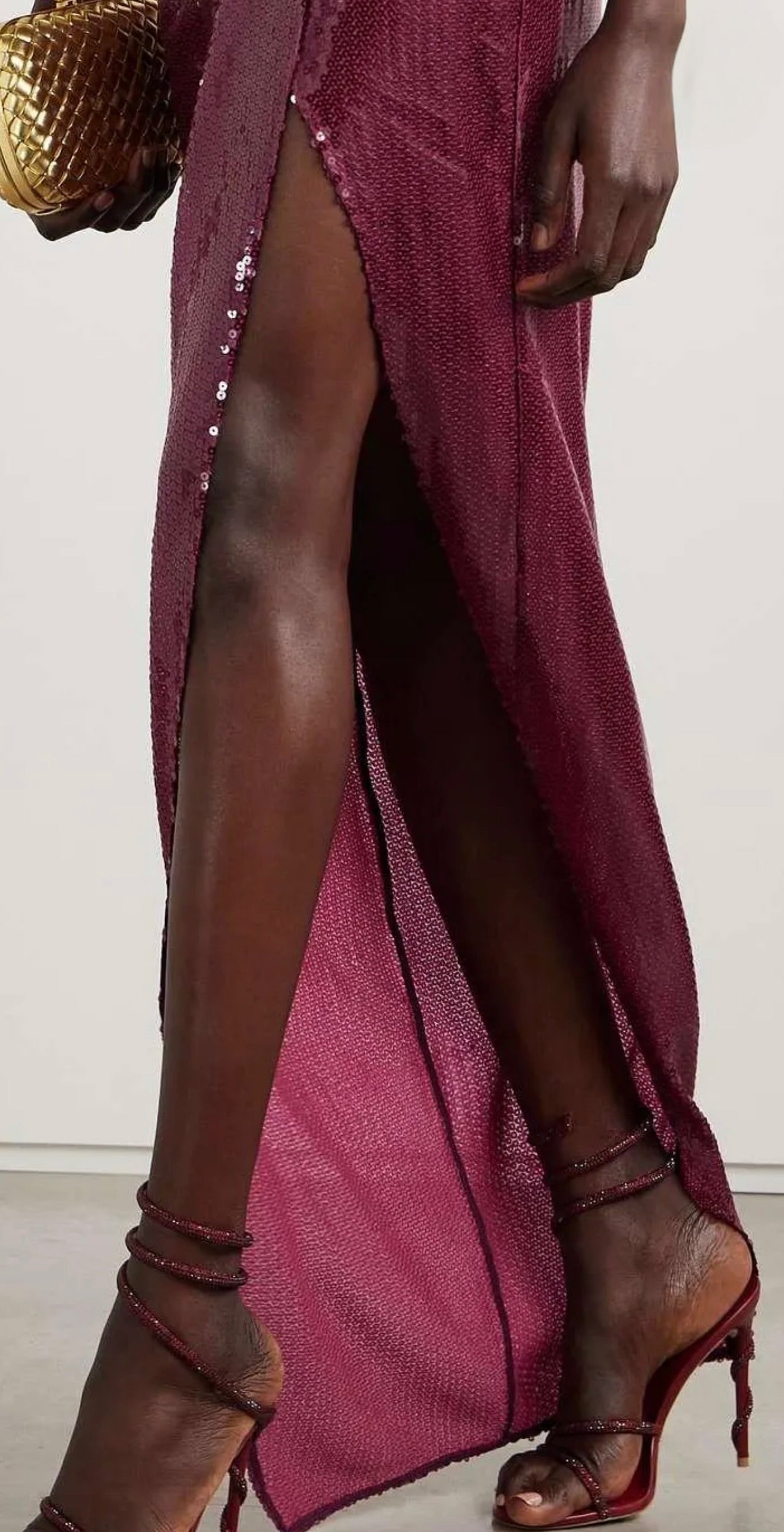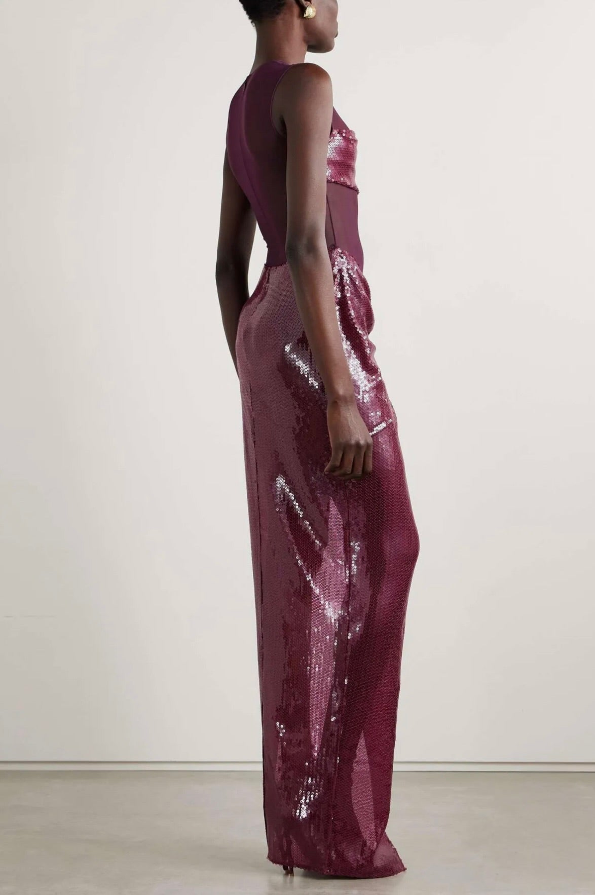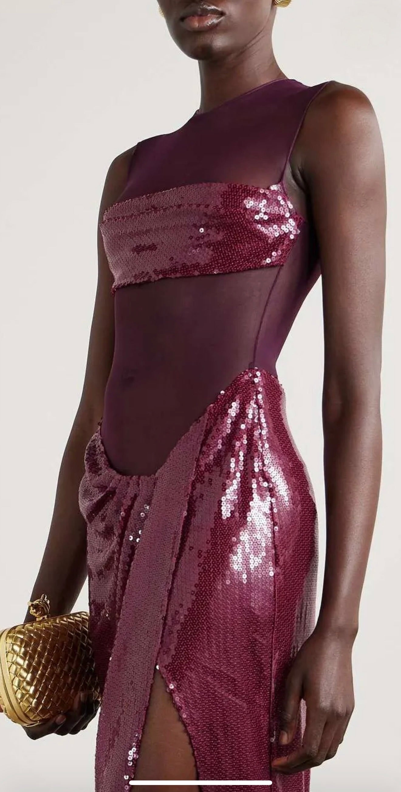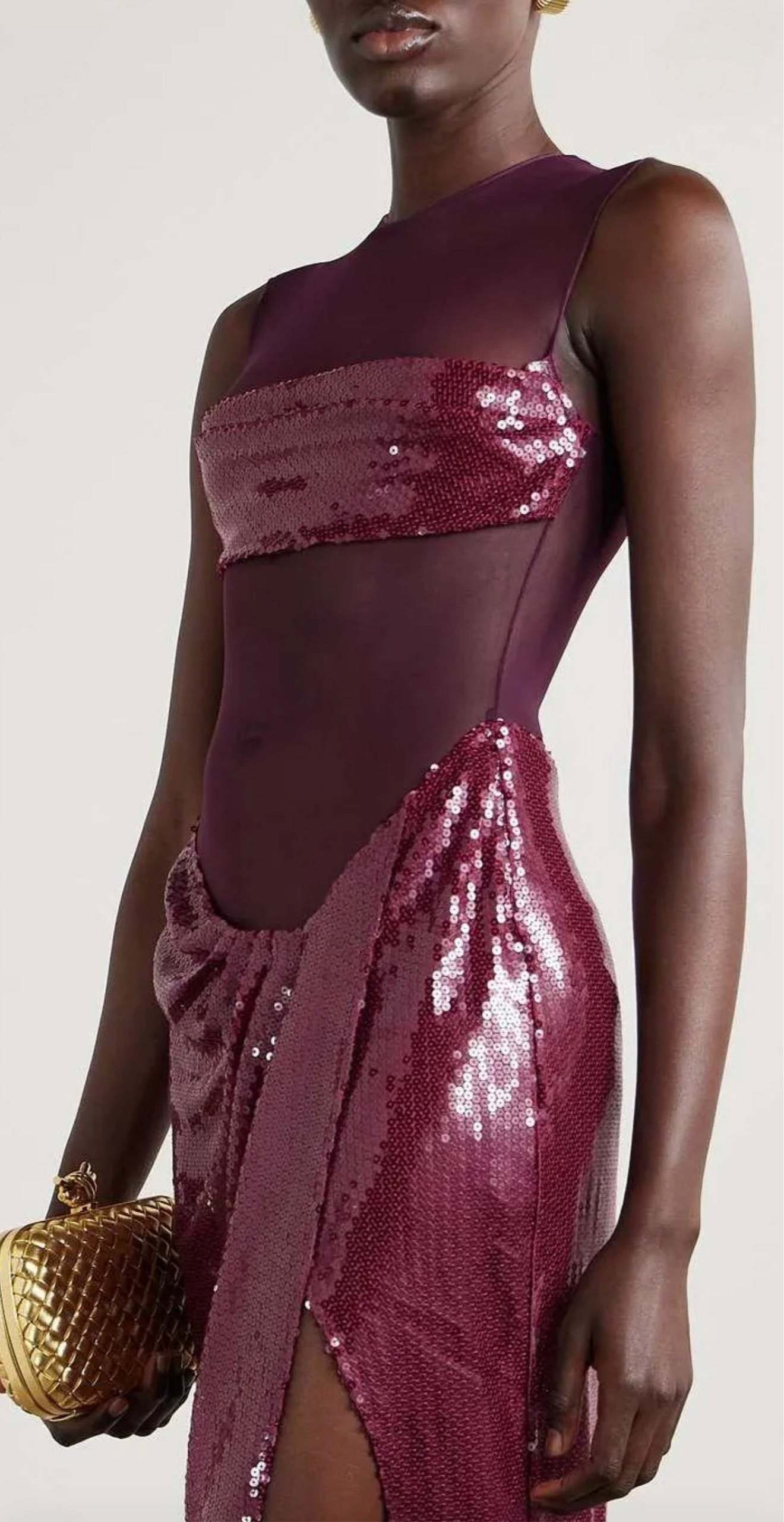 Vestido midi de lentejuelas y malla color uva